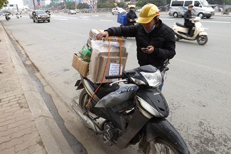 “Anh ơi ra nhận hàng hộ em cái!”. Sau cuộc điện thoại vài phút, trước mặt tôi là cậu shipper còn rất trẻ, mặt mũi nhễ nhại trong cái nắng đầu xuân. Chiếc xe máy cà tàng chở đằng sau thùng hàng to tướng, trên khung xe treo lủng lẳng thêm mấy túi đồ. Anh chàng thoăn thoắt lấy đồ trong thùng ra, đối chiếu hóa đơn rồi đưa cho tôi.