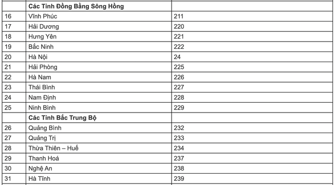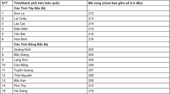 | Mã vùng điện thoại cố định của Việt Nam. Nguồn: Bộ GD-ĐT |