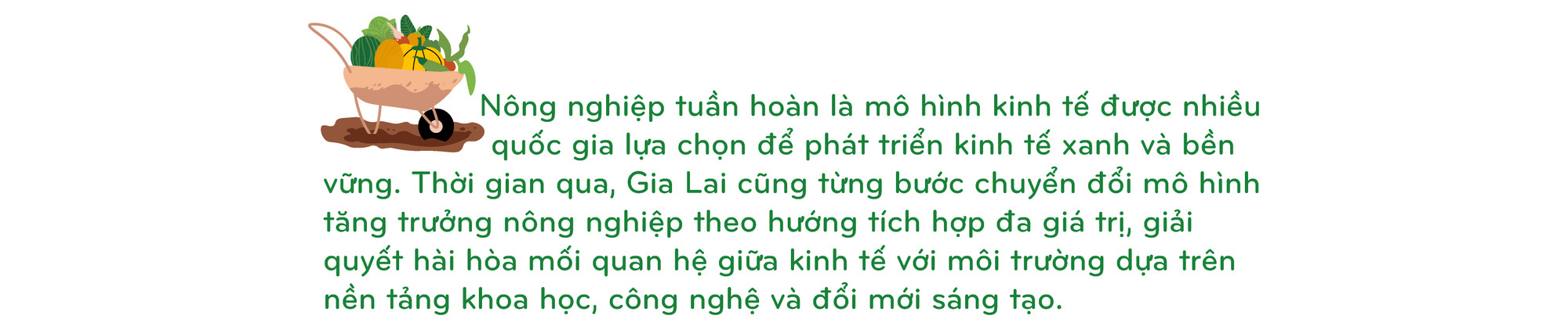 Ngoài các mô hình nông nghiệp tuần hoàn trên cây trồng, toàn tỉnh còn có 2.728 cơ sở chăn nuôi xây dựng hầm biogas, 5.322 cơ sở chăn nuôi sử dụng đệm lót sinh học. Đến nay, tỉnh cũng đã thu hút được 7 dự án đầu tư vào lĩnh vực chế biến thức ăn chăn nuôi, phân vi sinh và sản phẩm chăn nuôi với tổng diện tích 179,41 ha, tổng vốn đầu tư 638,09 tỷ đồng. Theo Phó Giám đốc Sở Nông nghiệp và PTNT Đoàn Ngọc Có: Tỉnh Gia Lai xác định phát triển nông nghiệp tuần hoàn là định hướng quan trọng thực hiện chuyển đổi mô hình tăng trưởng nông nghiệp theo hướng tích hợp đa giá trị, hiệu quả, bền vững, giải quyết hài hòa mối quan hệ giữa kinh tế với môi trường, tạo việc làm, tổ chức sản xuất kinh doanh nông nghiệp theo chuỗi giá trị dựa trên nền tảng khoa học công nghệ và đổi mới sáng tạo.