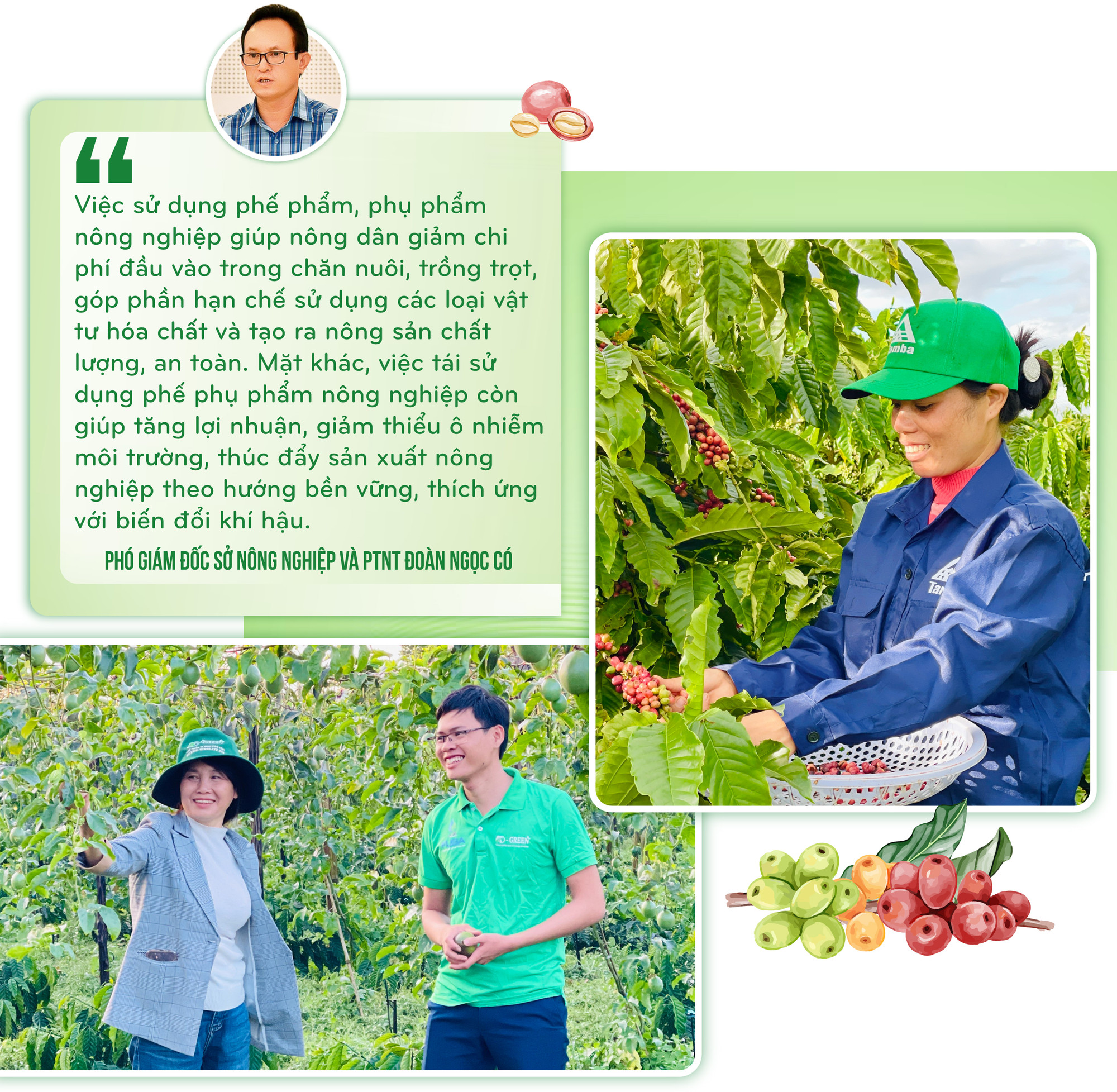 Hiện nay, một bộ phận nông dân đã biết tái sử dụng các nguồn phụ phẩm từ sản xuất nông nghiệp. Nhiều hộ sử dụng phụ phẩm rơm rạ trong sản xuất lúa để làm thức ăn cho trâu bò; tạo nguồn nguyên liệu sản xuất nấm hoặc được kết hợp để làm phân bón cho cây trồng, phủ mặt luống giữ ẩm cho đất sản xuất rau màu. Bên cạnh đó, nhiều hộ sử dụng vỏ quả cà phê để ủ phân hữu cơ bón cho cây trồng…