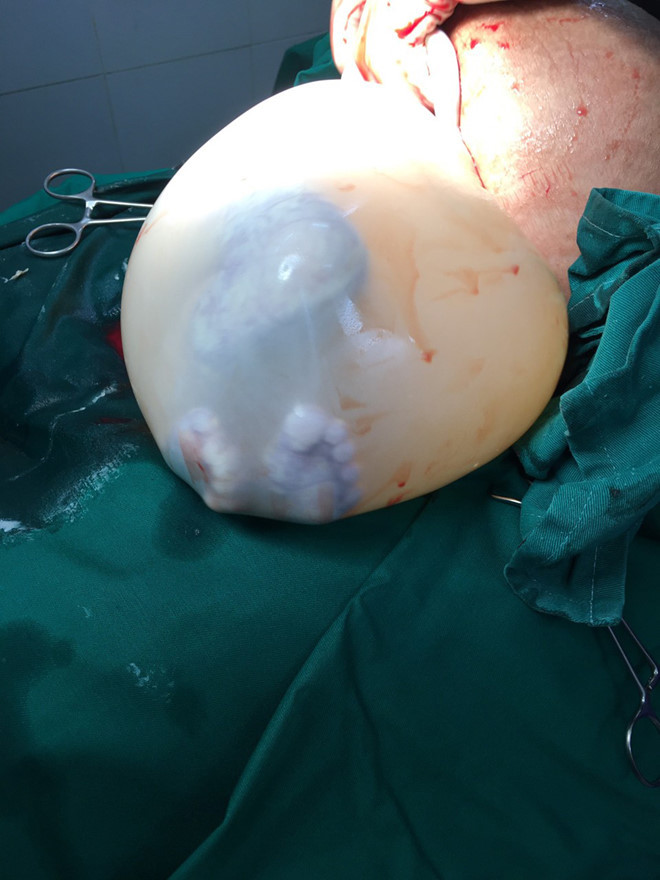 | Bọc ối còn nguyên vẹn của cặp bé gái song sinh- Ảnh: Tiến Dũng |