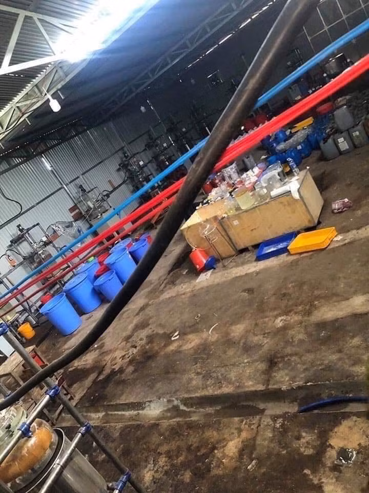 Tại hiện trường, công an thu giữ khoảng 13 tấn hoá chất, tiền chất phục vụ cho sản xuất ma túy, hàng trăm lít dung dịch ma túy tổng hợp cùng nhiều máy móc, dụng cụ dùng để sản xuất ma túy.