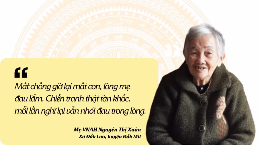 Cũng như nhiều mẹ VNAH từng gánh chịu những nỗi đau khôn xiết trong 2 cuộc kháng chiến trường kỳ của dân tộc, mẹ Xuân đã hai lần khóc tiễn người thân hy sinh vì đất nước.