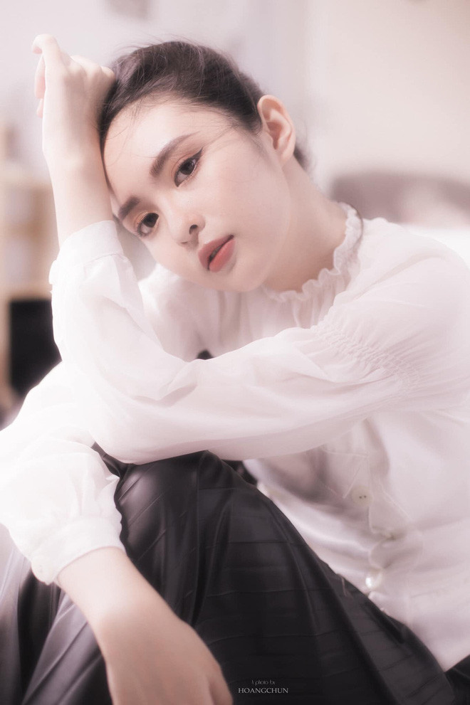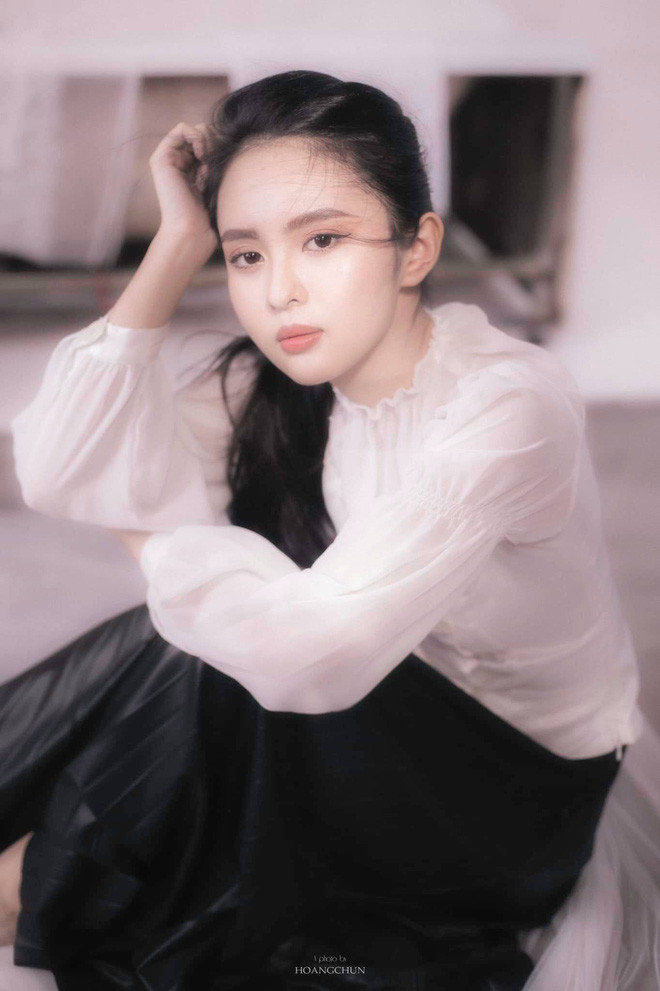 Nữ sinh sở hữu gương mặt trái xoan dịu dàng, làn da trắng, mũi cao. Vóc dáng thanh mảnh khiến cô lúc nào cũng toát lên vẻ mong manh.