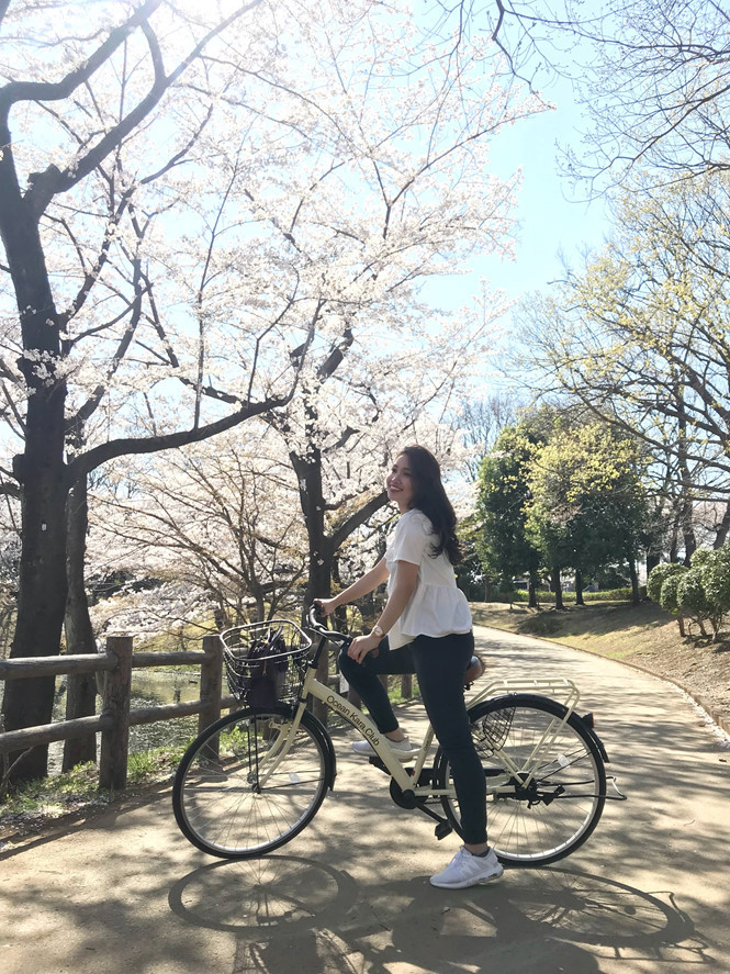 | Quỳnh Anh (bìa phải) cùng các bạn tại Tokyo. |