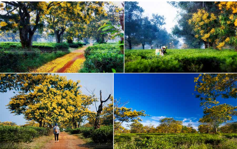 Mở đầu cho mùa hoa dại Tây Nguyên là hoa muồng vàng tháng 10. Gia Lai những ngày sang thu, hoa muồng vàng nở rộ, tô điểm một vùng rộng lớn trong sắc vàng rực rỡ. Những bức ảnh ghi lại tại nông trường chè Bàu Cạn, xã Bàu Cạn, huyện Chư Prông, Gia Lai.