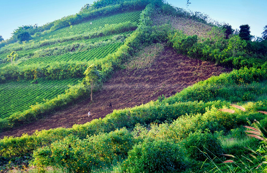 Tháng 11, mùa hoa dã quỳ vàng rực khắp núi đồi cho đến phố xá, nhiều nhất ở núi lửa Chư Đăng Ya, núi đá Pleiku và đường vào thành phố sát núi lửa Hàm Rồng.