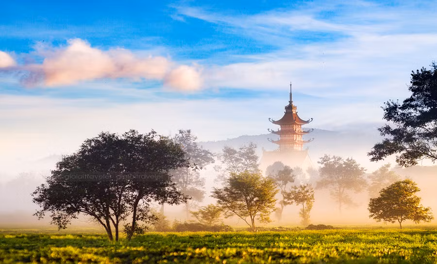 Một bức tranh thanh bình và thơ mộng khác là ngôi chùa Bửu Minh huyền ảo trong làn sương sớm. Nằm giữa một vùng đồi chè bạt ngàn, chùa Bửu Minh dựa lưng vào núi Tiên Sơn, bên cạnh là dòng sông và dãy núi cao hùng vĩ. Bửu Minh cũng là một trong những ngôi chùa nổi tiếng nhất Tây Nguyên.