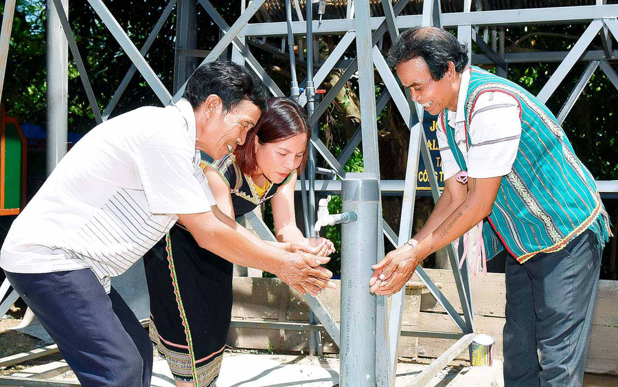 Ngoài sự hỗ trợ của nhà thiện nguyện, dân làng đã đóng góp tiền và nhiều ngày công lao động để lắp đặt, đấu nối hệ thống nước sinh hoạt đến 16 điểm trong làng để thuận tiện cho mọi người sử dụng.