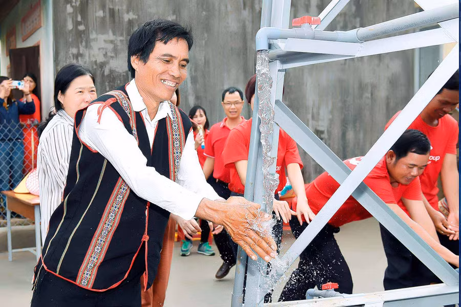 Công trình nước sạch đi vào hoạt động đã cung cấp nguồn nước đảm bảo hợp vệ sinh phục vụ sinh hoạt hàng ngày cho bà con.