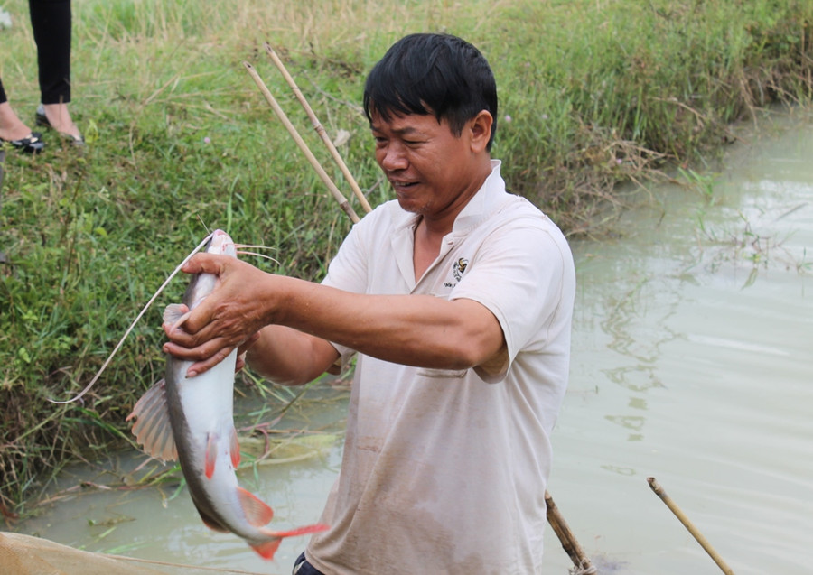 Sau hơn 1 năm thả nuôi, lứa cá giống đầu tiên của gia đình xuất bán đạt trọng lượng từ 3 - 7 kg/con, trừ các khoản chi phí gia đình thu về 270 triệu đồng.