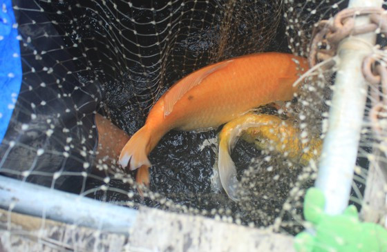 Những con cá chép Koi được nuôi thời gian hơn 1 năm. Ảnh: NGUYỄN TRANG.