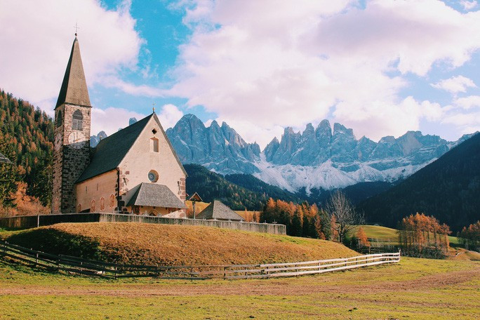 Val di Funes là thung lũng xinh đẹp thuộc tỉnh South Tyrol (Ý) với tầm nhìn ra dãy Dolomites. Dolomites được đưa vào danh sách di sản thế giới với những cảnh quan không thể có ở bất cứ một nơi nào khác.