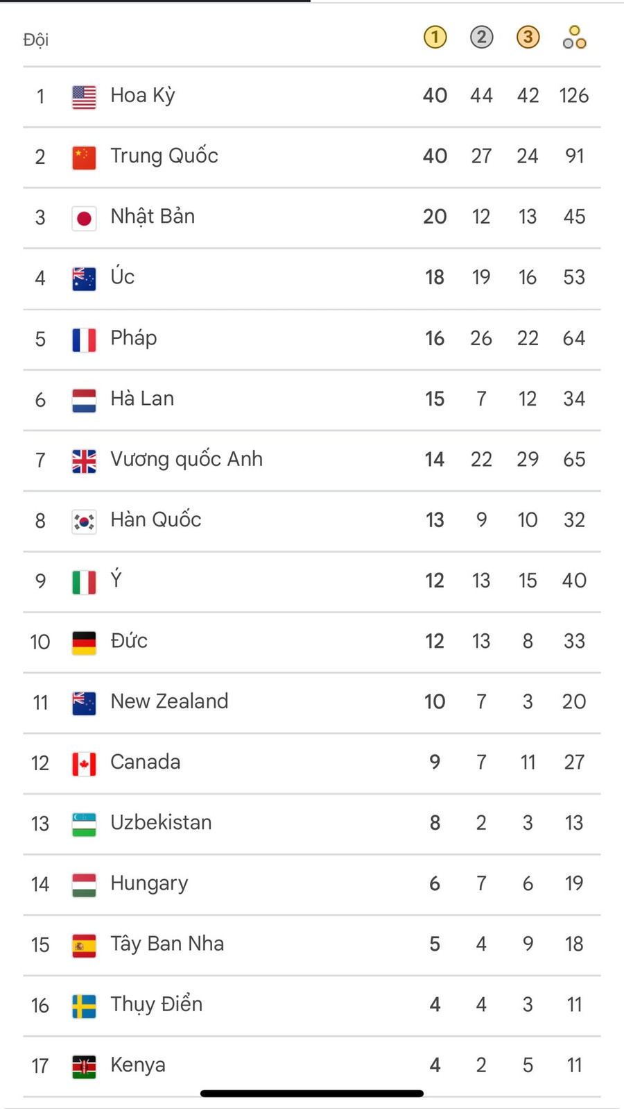 Tổng cộng đã có 91 đoàn thể thao giành được huy chương tại Olympic Paris 2024. Tuy nhiên, Đoàn thể thao Việt Nam lại gây thất vọng.