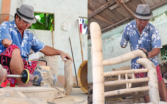 | “Nhiều người hỏi tôi một tay làm sao có thể cầm máy mài, máy đục để tỉa đồ mỹ nghệ được? Nhưng khi biết được giá trị đồ tre và đam mê thì mình có thêm động lực. Nếu biết làm, những cây tre Việt sẽ đi xa hơn, đem lại thu nhập lớn hơn cho người dân. Ông Phan Văn Chánh |