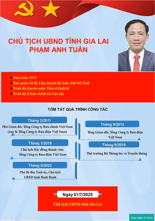Tại Quyết định số 1269/QĐ-TTg ngày 24.6.2025, Thủ tướng Chính phủ chỉ định ông Phạm Anh Tuấn, Phó Bí thư Tỉnh ủy Gia Lai (mới), nhiệm kỳ 2020 - 2025, giữ chức vụ Chủ tịch UBND tỉnh Gia Lai (mới), nhiệm kỳ 2021 - 2026.