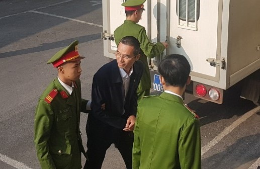Cảnh sát dẫn giải ông Đặng Anh Tuấn vào phòng xét xử.