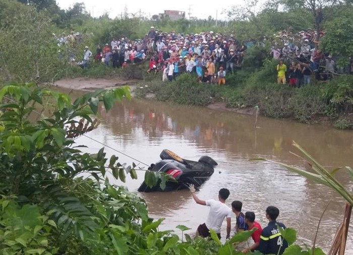 Ôtô Mercedes rơi xuống rạch, 3 người trong một gia đình tử vong