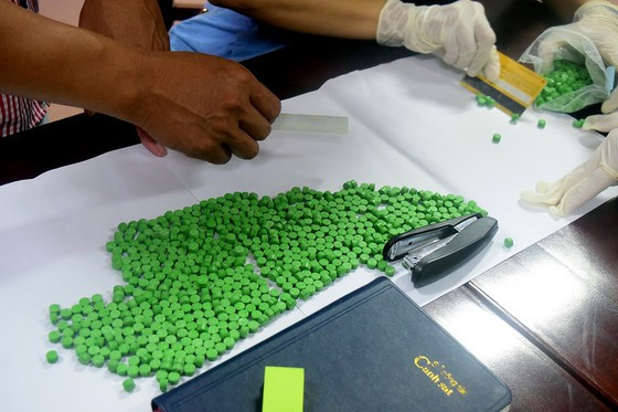 | Công an kiểm tra tang vật thu giữ |