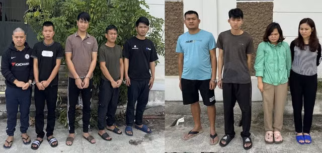 | Đường dây buôn bán, vận chuyển ma túy do Mạnh "du côn" (hàng trên, ngoài cùng bên trái). Ảnh: Công an Thanh Hóa |