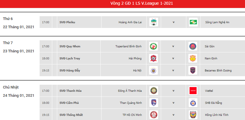 | Lịch thi đấu vòng 2 và bảng xếp hạng V.League 2021. |