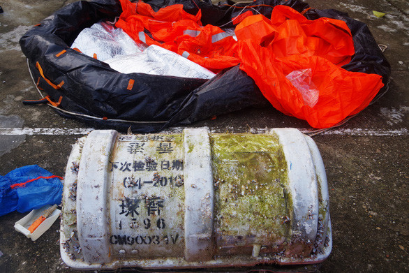 Tối 4-12, trung tá Lê Khắc Giáp, đồn trưởng Đồn Biên phòng cửa khẩu Cảng Thuận An (Bộ Chỉ huy tỉnh Thừa Thiên Huế) cho biết đơn vị vừa tiếp nhận một bộ dụng cụ cứu sinh hàng hải do người dân tìm thấy trôi dạt vào bờ biển.