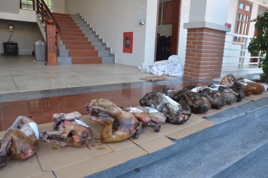 Tang vật thu giữ gồm 10 cá thể khỉ, 2 cá thể beo đốm, 1 cá thể tê tê (tất cả đều đã chết) với tổng khối lượng 120 kg.