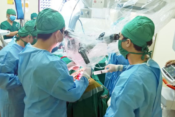 Các bác sĩ chuyên Khoa ngoại Thần Kinh tại BV đã hội chẩn kỹ lưỡng, phối hợp chuyên môn cùng các bác sĩ BV Chợ Rẫy để tiến hành phẫu thuật cho bệnh nhân. Việc phẫu thuật điều trị u màng não ở vị trí khó như bệnh nhân này không chỉ đòi hỏi kinh nghiệm chuyên môn của bác sĩ mà còn cần sự hỗ trợ của các thiết bị hiện đại như kính hiển vi phẫu thuật, máy hút u siêu âm (máy hút mô u chọn lọc không làm tổn thương mạch máu thần kinh) nhằm giảm thiểu các sang chấn cho người bệnh.