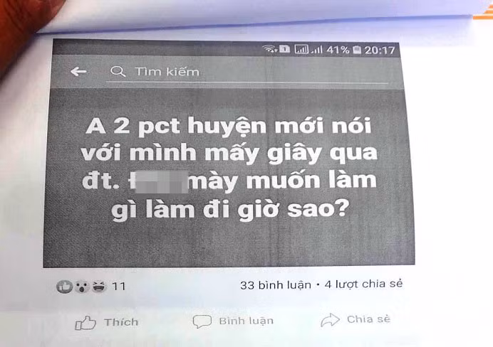 Trong đó có những nội dung như: “A 2 pct huyện mới nói với mình mấy giây qua đt. ĐM mày muốn làm gì làm đi giờ sao?... A6 Ct xã, A2 PCT huyện mấy anh liều thiệt có dé Ko?” và nhiều bình luận khác trên mạng xã hội.
