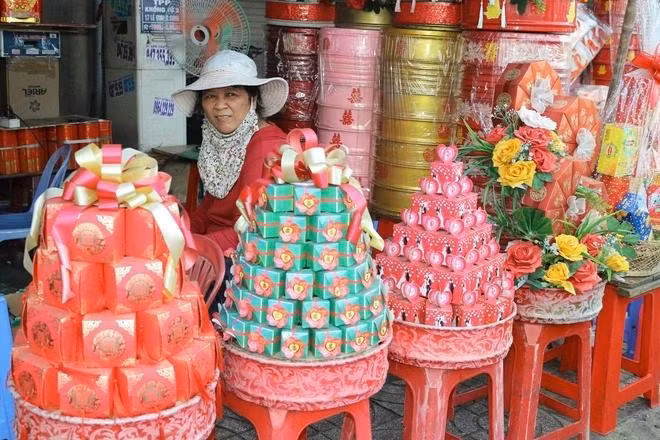 Mỗi dĩa trầu cau ông Cảnh giá 40.000 đồng, riêng buồng có giá từ 300.000 đồng. Bên cạnh trầu cau dành cho lễ cưới hỏi hay cúng kiếng, ông Cảnh còn bán sẵn những bao trầu có vôi cho khách lẻ ăn. Ông nói thêm, con phố nằm gần khu vực cộng đồng người Hoa, nơi trầu cau là một phần quen thuộc trong đời sống hằng ngày nên họ “ăn trầu đều như cơm bữa".