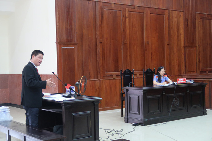 | Luật sư phía Grab (đứng) phát biểu tại tòa |