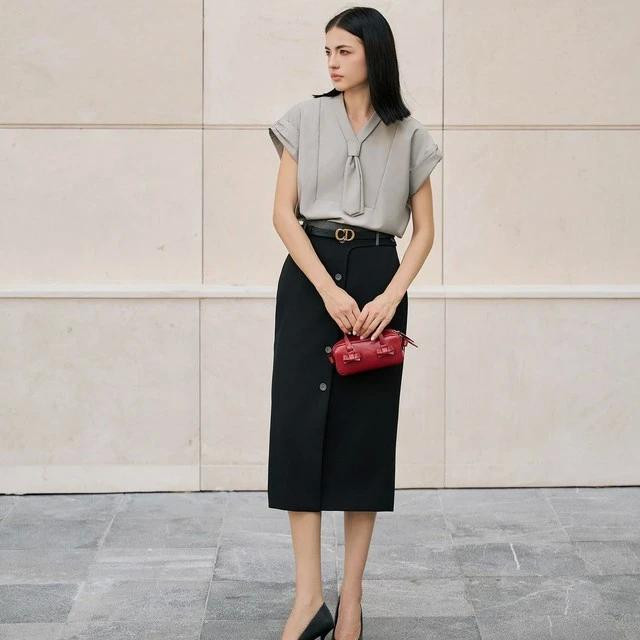 Chân váy bút chì với đường nét ôm nhẹ khiến nàng trở nên thanh lịch và cuốn hút. Vẻ đẹp dịu dàng pha chút hiện đại, chuẩn khí chất nàng thơ giữa chốn công sở.