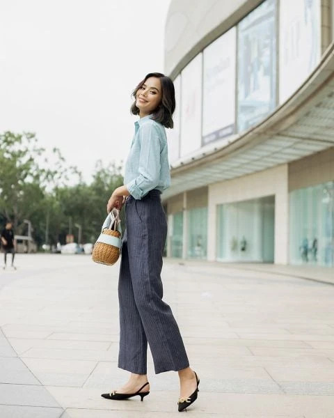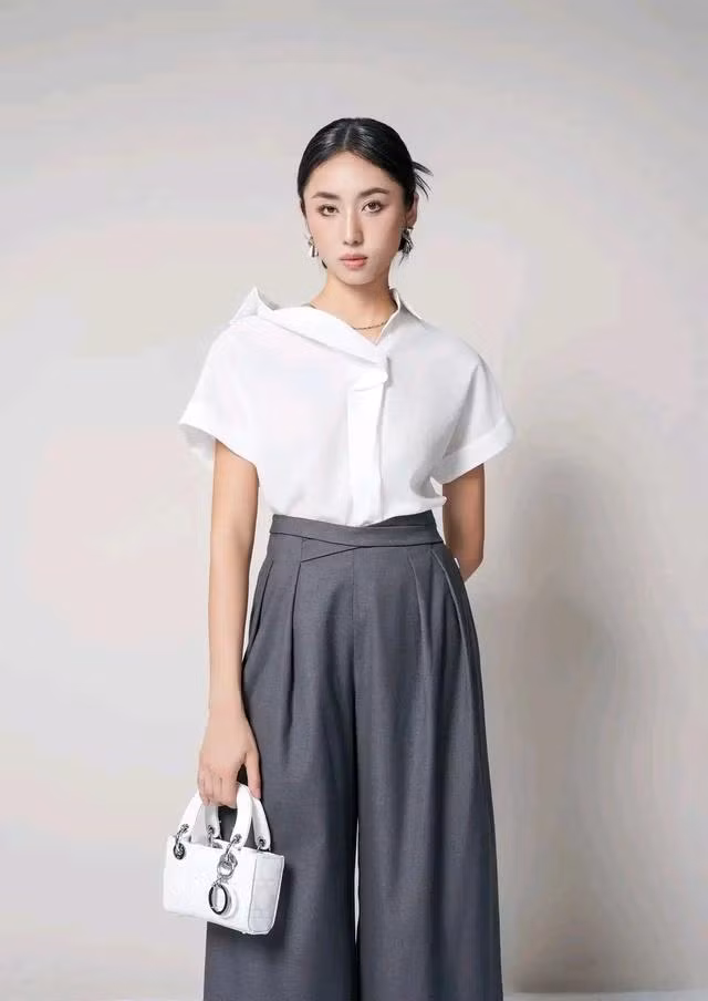 Một trong những cách phổ biến và hiệu quả nhất để phối đồ gam màu xám với trắng là trong trang phục công sở. Sự kết hợp này luôn là lựa chọn hoàn hảo cho những ai yêu thích phong cách thời trang tối giản, tinh tế. Hai gam màu trung tính này dễ dàng hòa quyện, tạo nên tổng thể trang phục hài hòa, sang trọng và phù hợp với mọi hoàn cảnh. Bạn có thể chọn một chiếc áo sơ mi trắng kết hợp với quần tây xám hoặc chân váy bút chì xám. Để hoàn thiện bộ trang phục, một chiếc blazer xám nhạt sẽ tạo nên vẻ ngoài chuyên nghiệp và tự tin.