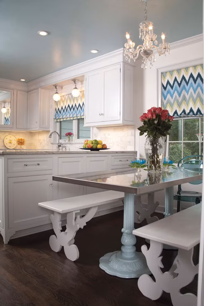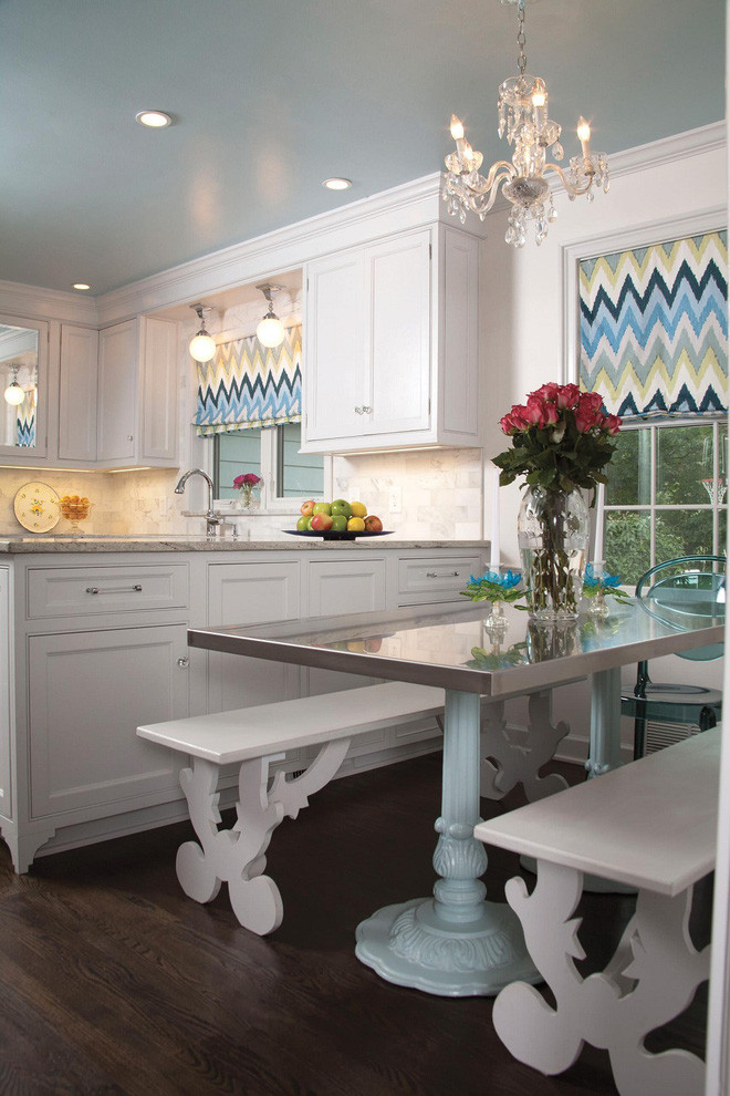 Một chút tông màu xanh dương pha kèm xám sẽ tạo cảm giác sóng biển vỗ bờ dạt dào, những bữa ăn nhẹ của gia đình sẽ ngập tràn hạnh phúc đấy.