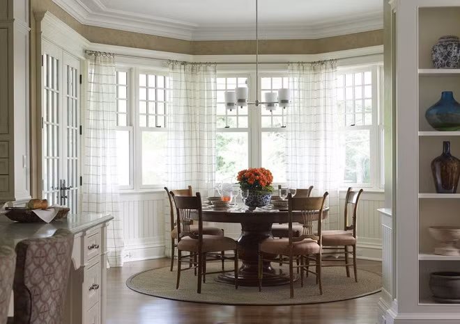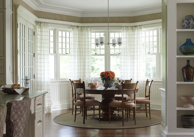 Với thiết kế nội thất bằng gỗ cổ điển như thế này rồi thì tốt nhất là bạn nên lựa chọn mẫu rèm cửa sáng màu và đơn giản để giúp tạo điểm nhấn cho không gian.