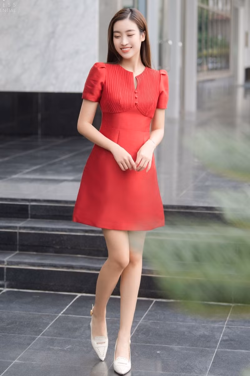 | Vóc dáng mảnh mai cùng thiết kế đầm ngắn trẻ trung và gam đỏ rực rỡ khiến nàng hậu không chỉ khoe được đôi chân dài, thon mà còn được tôn vinh màu da trắng sứ, mịn màng, khả ái. |
