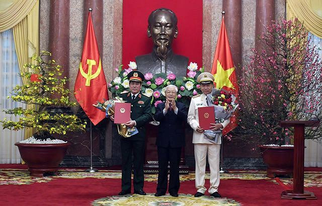 Sáng 29/1, tại Phủ Chủ tịch, Văn phòng Chủ tịch nước phối hợp với các cơ quan liên quan tổ chức Lễ trao Quyết định của Chủ tịch nước Cộng hòa xã hội chủ nghĩa Việt Nam thăng cấp bậc hàm, quân hàm từ Thượng tướng lên Đại tướng đối với hai đồng chí sĩ quan cao cấp của Công an và Quân đội.