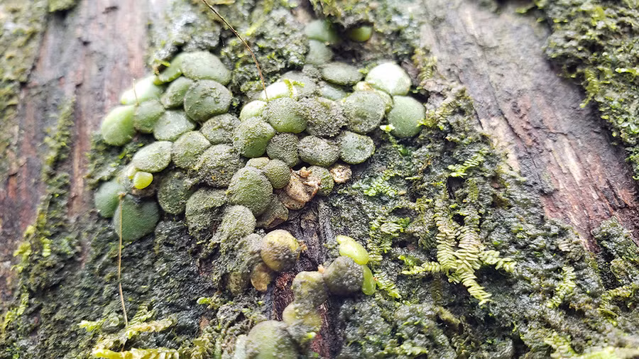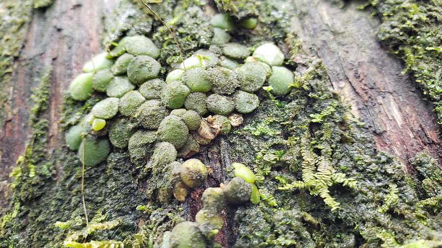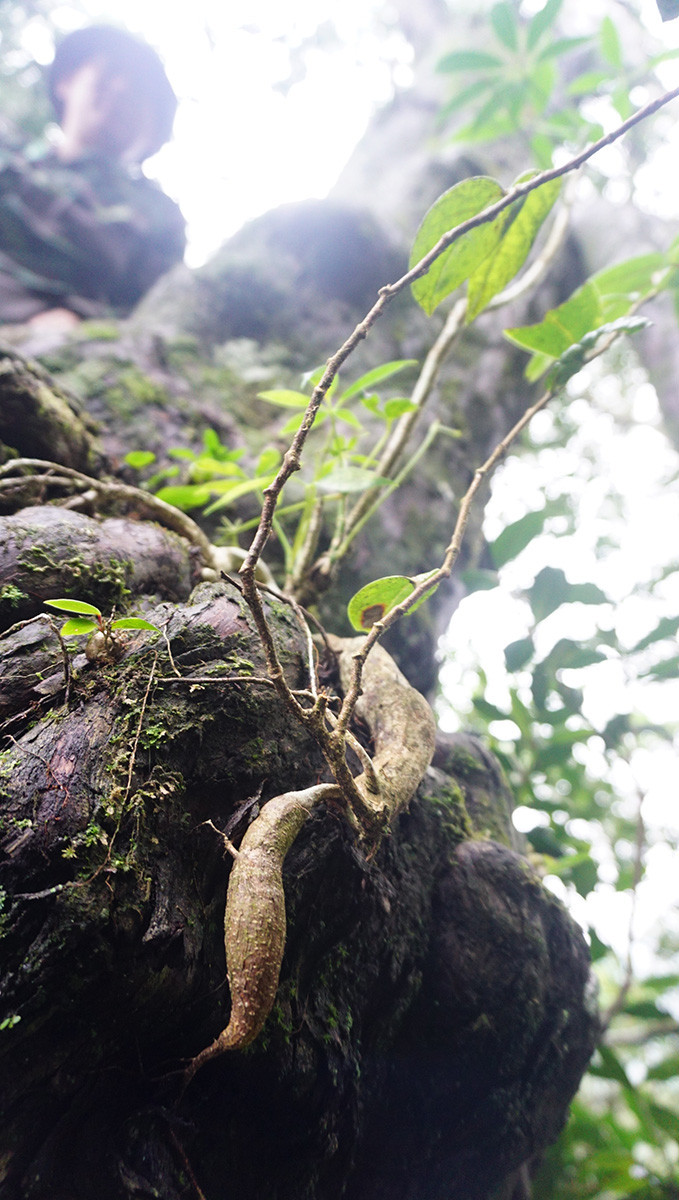 Len bèo, loài lan sống trên thân bách xanh cổ thụ - Ảnh: T.LỘC