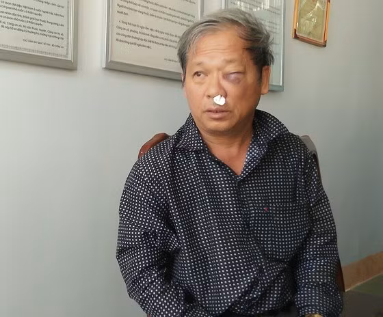 Tại bệnh viện, nhà báo Hoàng Đình Chiểu bị chấn thương nhiều phần trên cơ thể. Đặc biệt vùng mặt bị nhiều vết thương tụ máu.