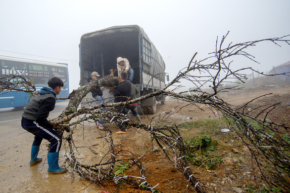 Dọc tuyến quốc lộ 6, đào rừng bán la liệt. Xe nào về xuôi cũng buộc, cũng chằng đào trên nóc. Dân bản có thêm ít tiền tiêu tết, nhưng cũng nhiều người buồn. Ông Bính, một người làm kinh doanh ven quốc lộ 6 thuộc huyện Vân Hồ, nhớ lại hồi ông mới lên Sơn La mở quán còn bạt ngàn đào. Gần tết, hoa đào nở rực. Ấy thế mà hơn chục năm qua, các nương đào cứ thưa dần.