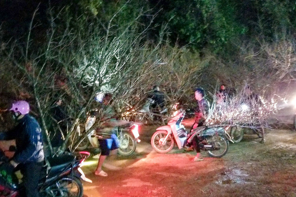 Càng về khuya, đào về chợ biên giới ít hơn, nhưng toàn cành "khủng". Nửa đêm, hai chiếc tồng tộc loạng choạng chở 2 cành đào to choán gần hết lòng đường. Giàng A Xanh "hét" giá: "28 triệu, lấy không?". Đám "bắt đào" và chủ buôn tụ vào, người soi đèn, kẻ lật cành ngắm nghía.