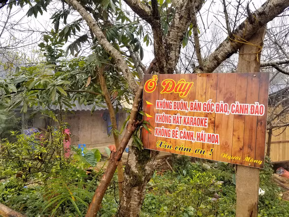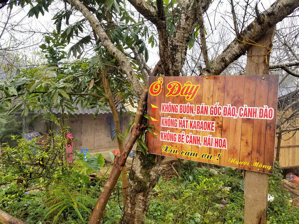 Anh bạn Tráng A Chia có homestay ở bản Hua Tạt, Vân Hồ, kịch liệt phản đối chặt đào để bán. Trước cổng nhà anh treo cái bảng to tướng với dòng chữ: "Ở đây không buôn bán gốc đào, cành đào...". Là người Mông lớn lên ở Hua Tạt, anh chứng kiến nhiều vườn đào cứ "tí xỉu dần mòn", người trong bản cũng chặt cành, cũng đào cả gốc mang bán.