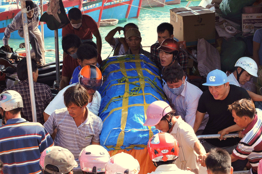 (GLO)- Lúc 2 giờ 30 phút sáng 1-2, tàu cá PY 90312 TS do ông Trần Bông (SN 1960, trú ở khu phố Bạch Đằng, phường 6, TP. Tuy Hòa) làm thuyền trưởng cùng 10 lao động đã đưa thi thể anh Nguyễn Minh Pháp (SN 1988, trú ở thôn Phú Lương, xã An Phú, TP. Tuy Hòa) vào cảng Vũng Rô, xã Hòa Xuân Nam, huyện Đông Hòa, bàn giao cho gia đình mai táng.