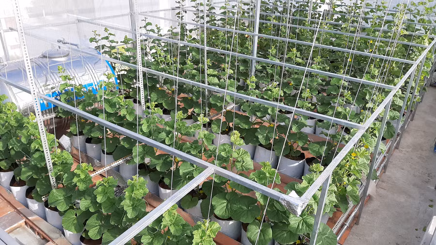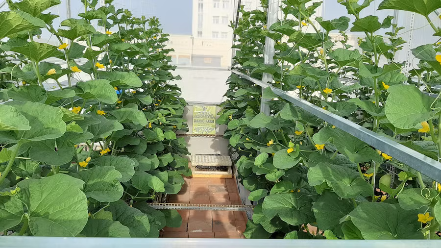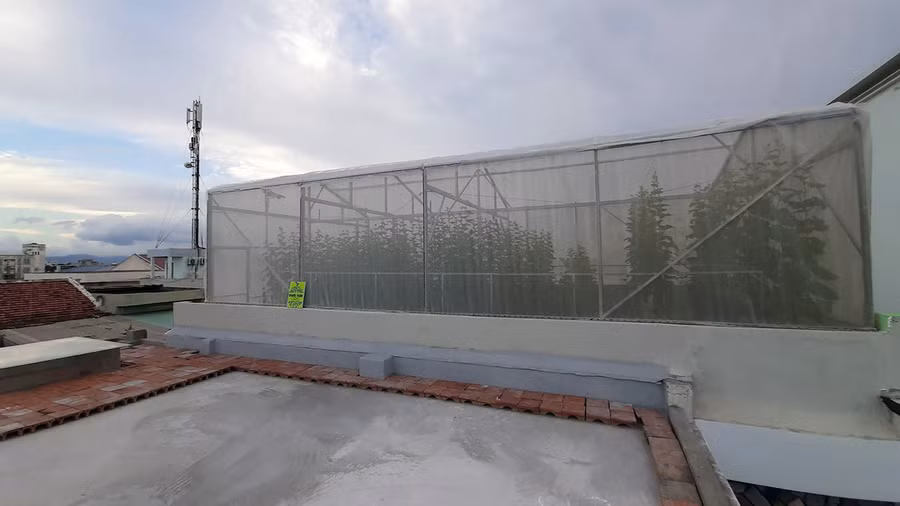Đầu năm 2020, gia đình sửa nhà, anh cũng đề nghị bố mẹ sửa luôn sân thượng tầng 3 để chỉ chuyên trồng dưa. Tại đây, Anh làm nhà lưới kiên cố rộng 42 m2 ở khu vực nhiều nắng, ít gió, ít các loại cây lá xung quanh.