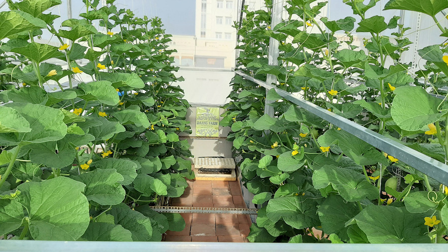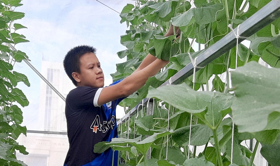 Năm 2019, An làm nhà lưới để khắc phục các nhược điểm trên, song vì vườn ở tầng 2 không thông thoáng nên chất lượng dưa cũng không ngon.