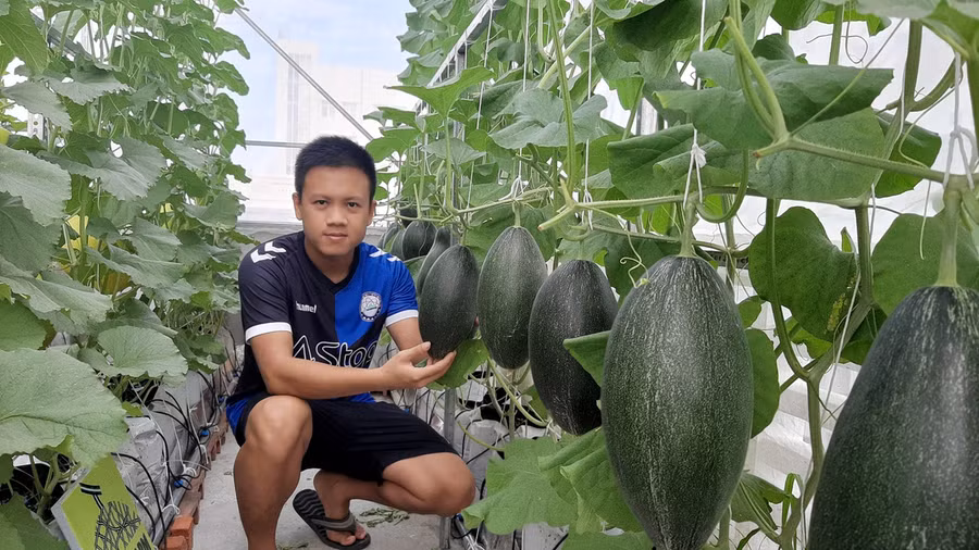 Từng nghiện game khiến ba mẹ phàn nàn, Bùi Vũ An quyết định làm vườn. Giờ vườn dưa của anh trở thành không gian thư giãn sớm chiều của ba mẹ.