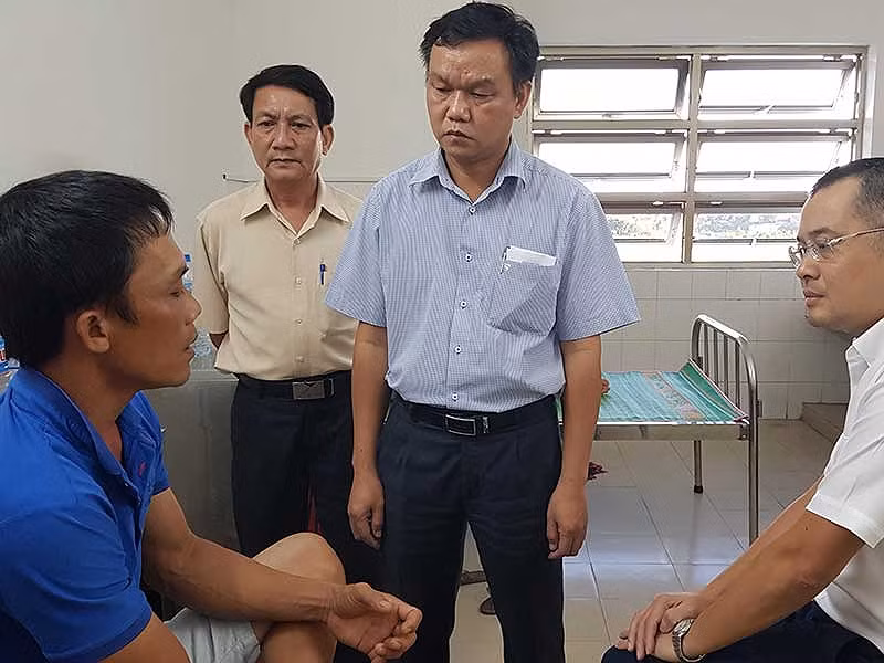 Ông Phạm Đại Dương, Chủ tịch UBND tỉnh Phú Yên, thăm hỏi, động viên ông Nguyễn Duy Phương đang điều trị tại BV đa khoa tỉnh Phú Yên. Ảnh: TẤN LỘC