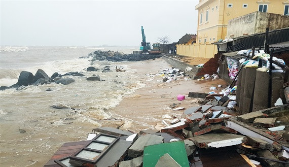 Ngày 3/1, tại khu dân cư Bạch Đằng, Phường 6, TP. Tuy Hòa (Phú Yên), người dân thất thần nhìn cảnh triều cường “xóa sổ” nhà cửa tan hoang. bà Phạm Thị Gái cho biết: “Triều cường trong những tháng vừa qua rất mạnh liên tiếp đánh vào phần móng của nhà tôi. Mặc dù cố gắng chèn chống nhưng không hiệu quả, đỉnh điểm khoảng 19 giờ tối qua thì sóng đánh sập phần sau của ngôi nhà. Hiện tại ban đêm là phải xin ở nhờ nhà thân, còn sáng về ở đây ở tạm…”