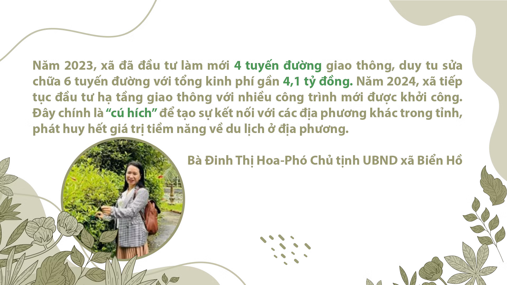 Xác định hạ tầng giao thông là khâu đột phá, mang tính chiến lược cho sự phát triển kinh tế-xã hội, những năm qua, xã Biển Hồ đã huy động nhiều nguồn lực để đầu tư hoàn thiện hạ tầng giao thông, tạo động lực phát huy tối đa tiềm năng, thế mạnh của địa phương.