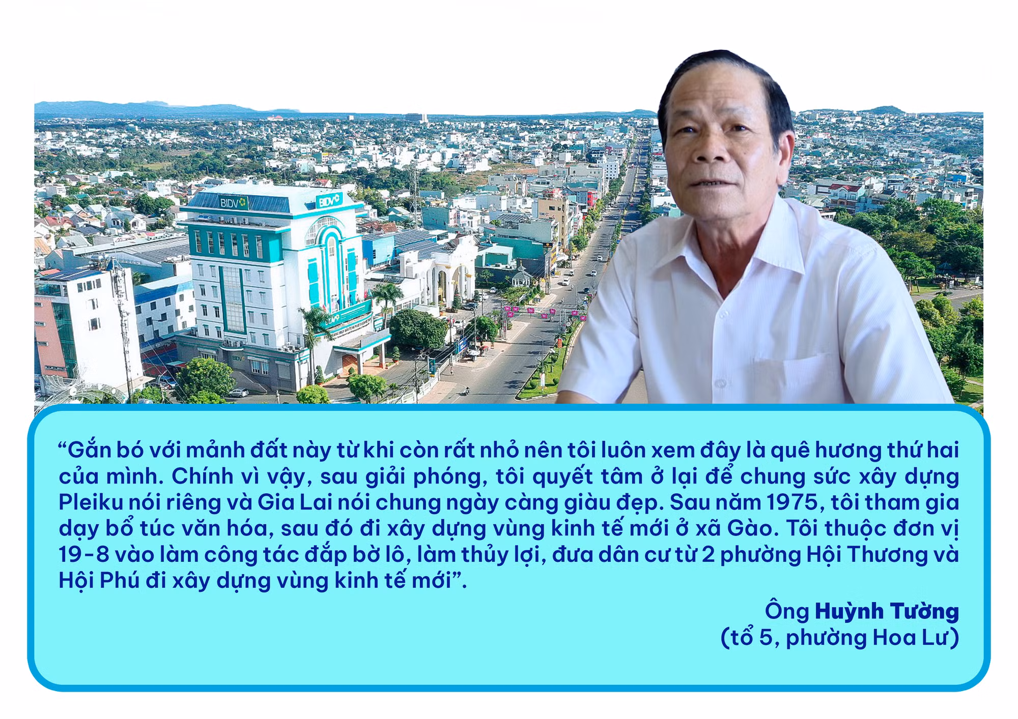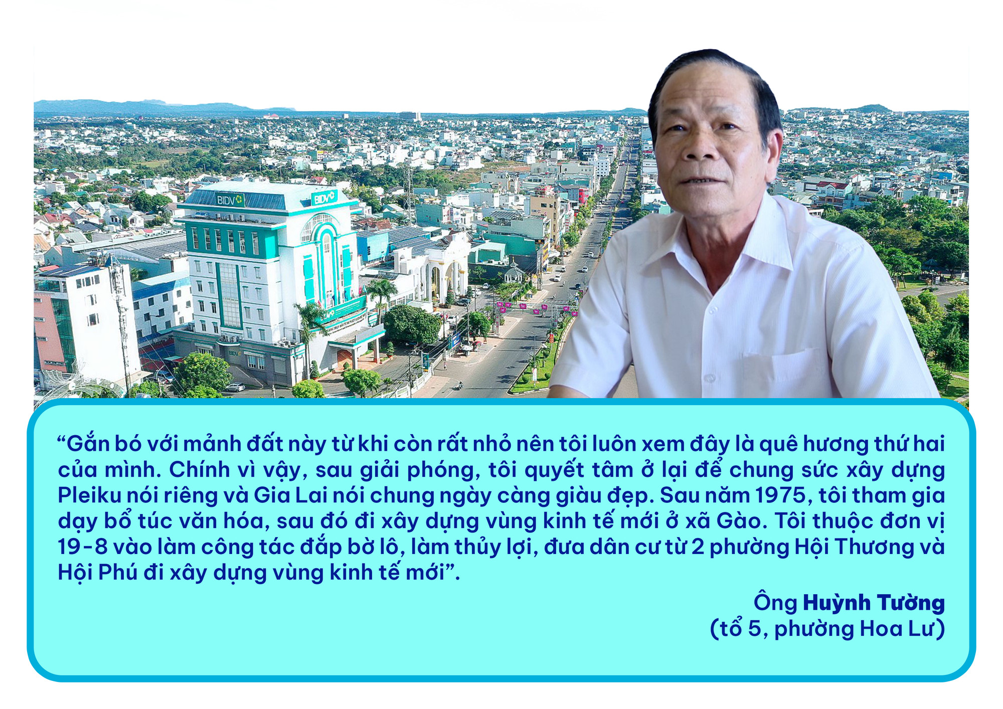 Theo ba mẹ từ Hoài Nhơn (tỉnh Bình Định) lên Pleiku từ năm 1964 khi mới 4 tuổi, rồi gắn bó đến nay, ông Huỳnh Tường (tổ 5, phường Hoa Lư) đã có nhiều đóng góp cho công cuộc tái thiết, xây dựng Phố núi.